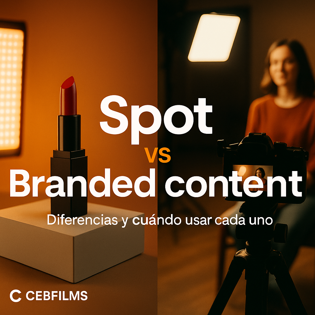 A la hora de planificar una campaña en vídeo, muchas marcas se preguntan: ¿hacemos un spot (anuncio breve, directo a conversión) o un branded content (contenido de valor asociado a la marca)? Ambos pueden convivir, pero responden a objetivos distintos y se producen diferente. Aquí va una guía clara para decidir y ejecutar.